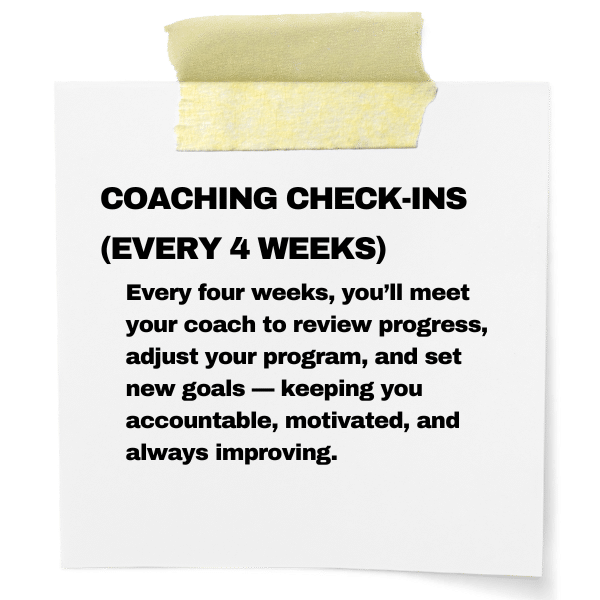2. How often do I meet with the coach? You’ll meet with the head coach every 4 weeks to review your progress, adjust your plan, and ensure you stay on track.